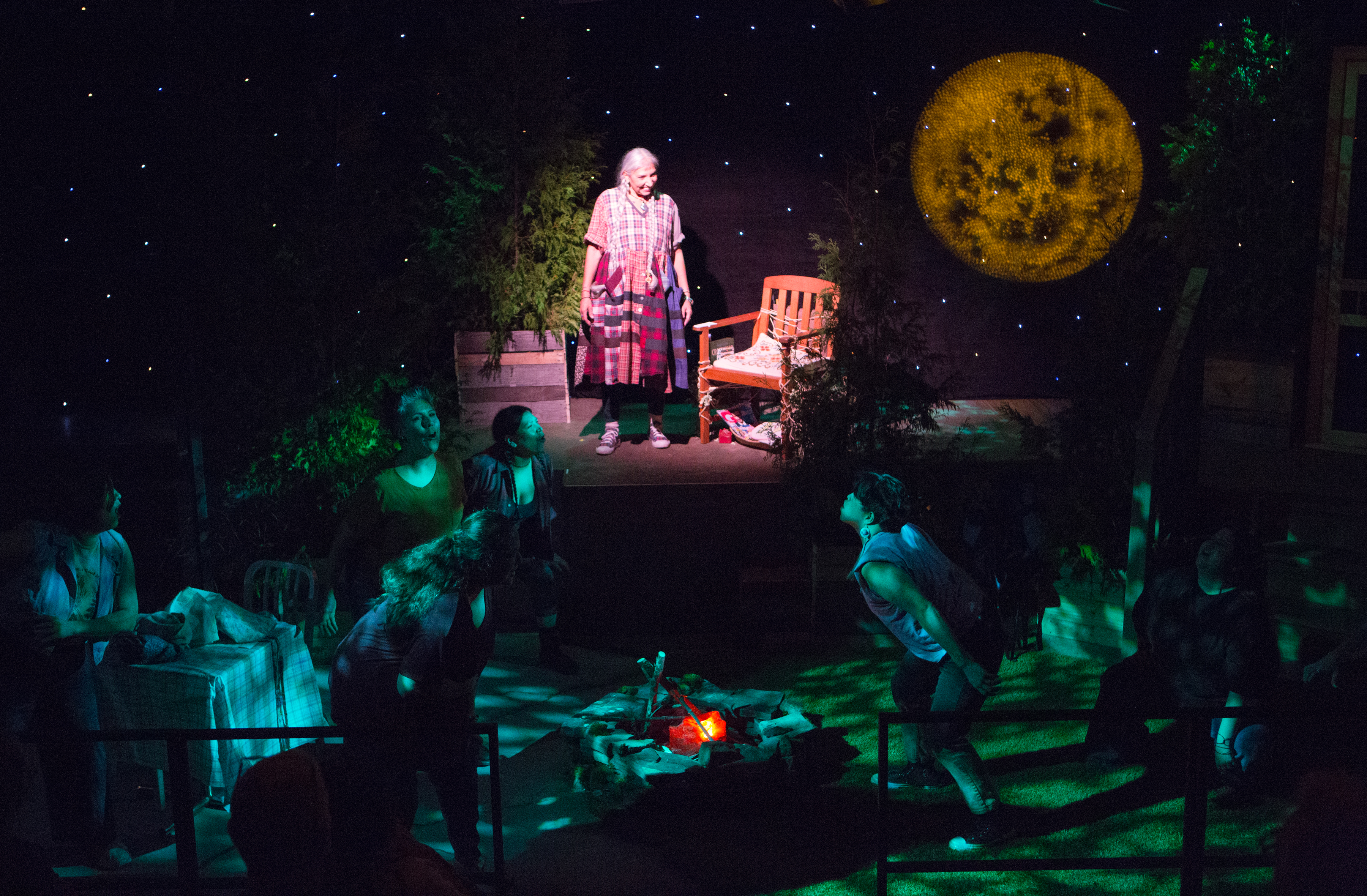 When their Matriarch ends up in a coma, a ma’iingan-wolf clan family gathers together to work through their collective grief and begin to heal from an incident in the past. While the Aunties camp out in the hospital room, the younger cousins spend their time at the Grandmother’s house by the backyard firepit; all while being circled by a cackling crow jokester.